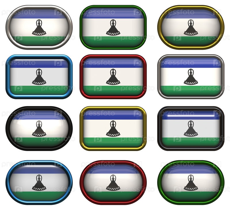 Двенадцать кнопок с флагом Лесото