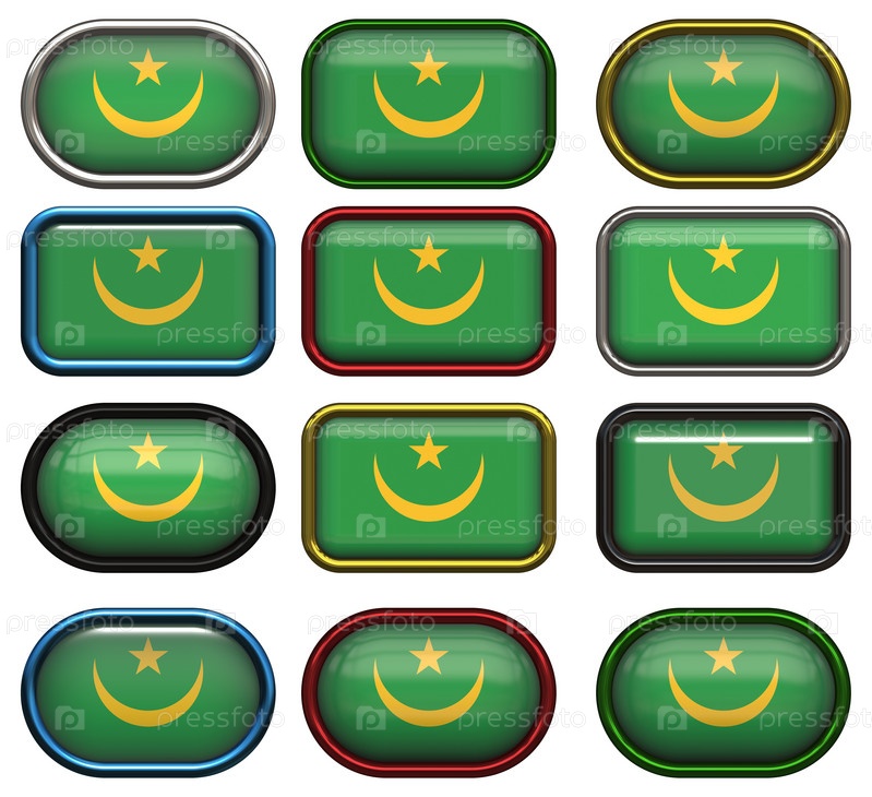 Двенадцать кнопок с флагом Мавритании