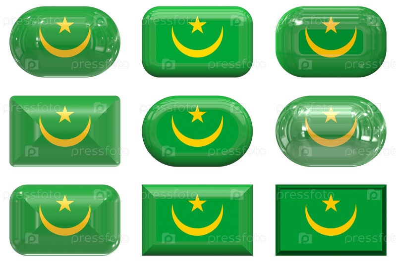 Девять стеклянных кнопок с флагом Мавритании