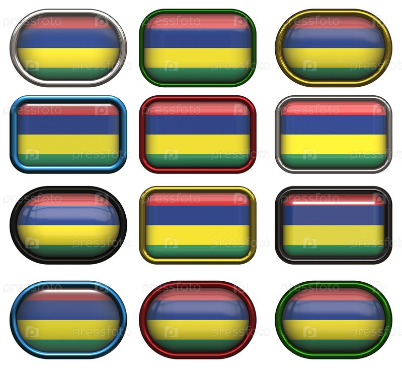 Двенадцать кнопок с флагом Маврикии