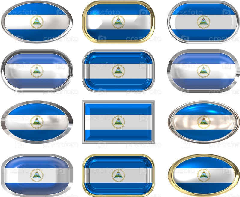 Двенадцать кнопок с флагом Никарагуа