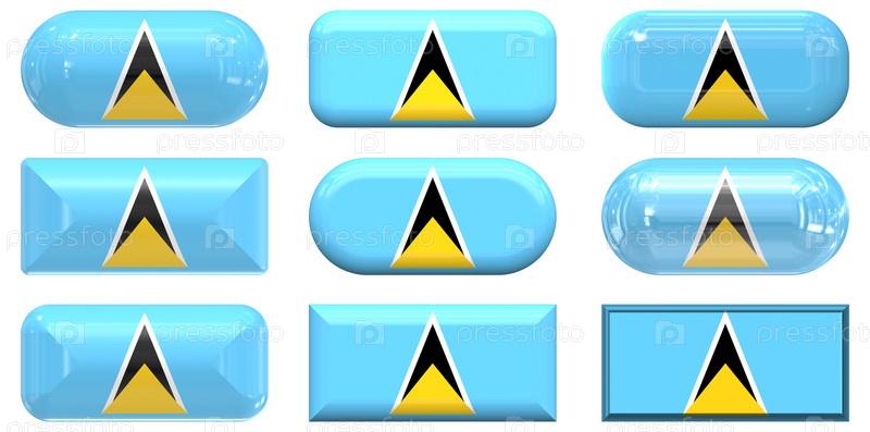 Девять стеклянных кнопок с флагом Сент-Люсии