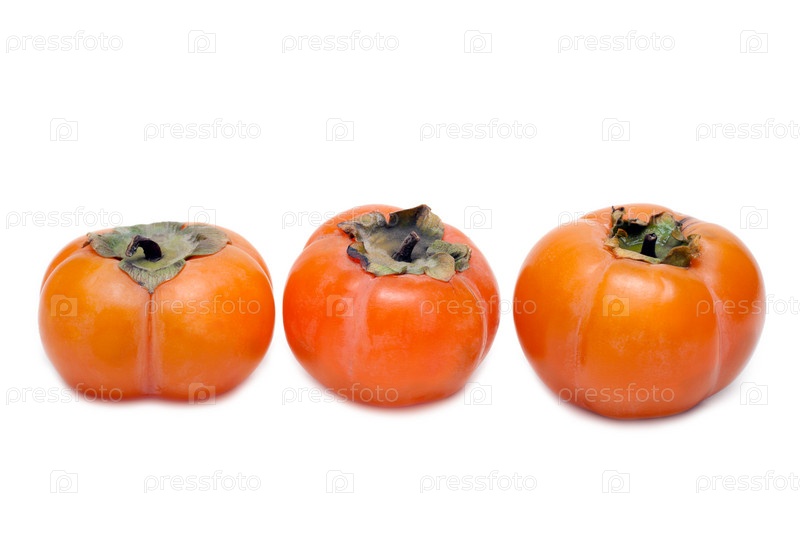 Три спелые хурмы на белом фоне
