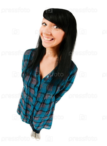 Улыбающаяся девушка - подросток на белом фоне