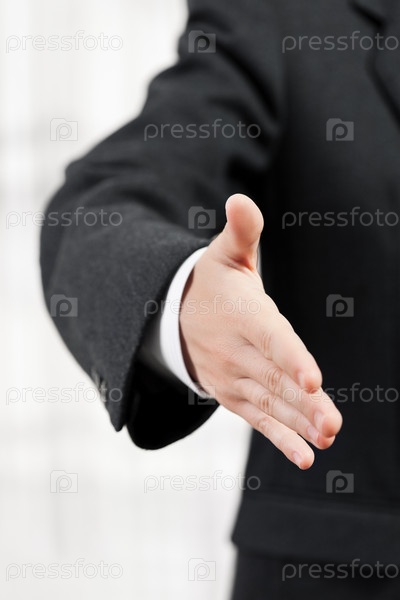 Бизнесмен в черном костюме протянул руку для приветствия