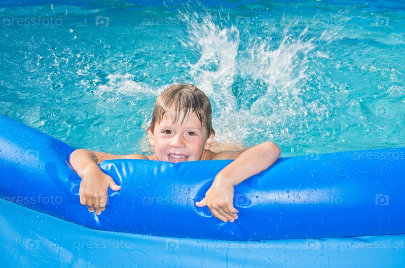 Счастливый мальчик в бассейне