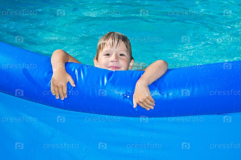 Счастливый мальчик в бассейне