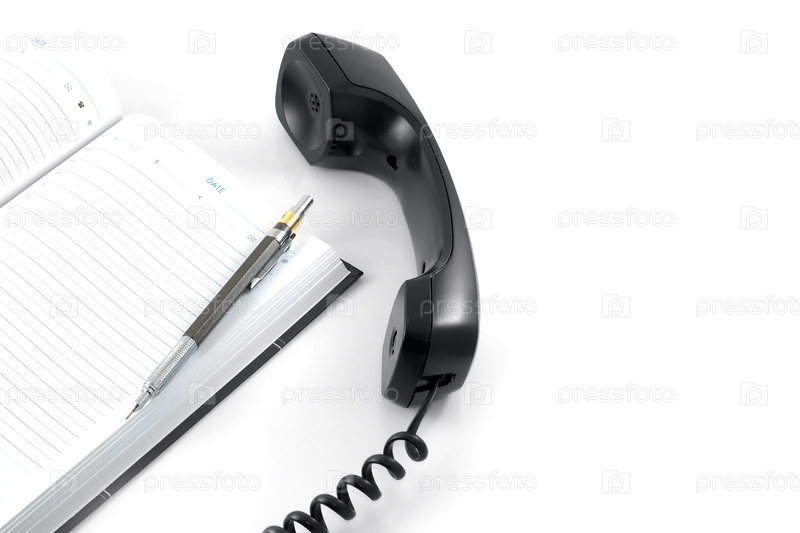 Телефонный приемник и ноутбук на белом фоне