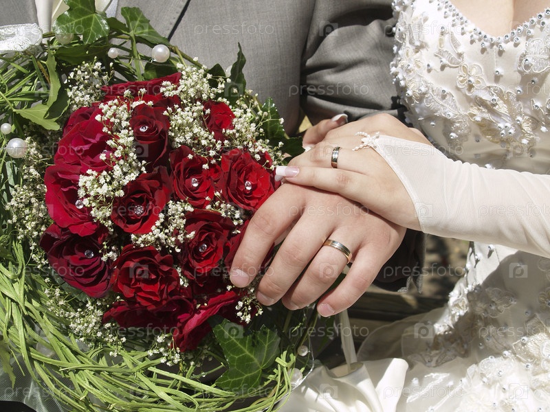 Свадебный букет и руки молодоженов