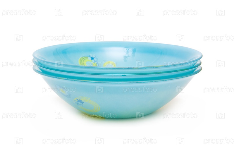 Глубокие голубые тарелки на белом фоне