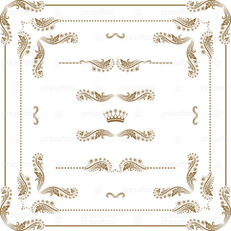 Векторный набор элементов декора, границ и рамок. Оформление страницы