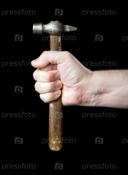 Молоток в руке на черном фоне