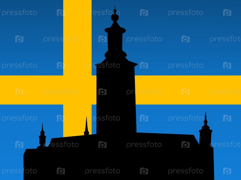 Силуэт Стокгольма на фоне шведского флага