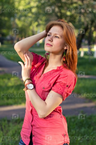 Красивая женщина позирует в парке