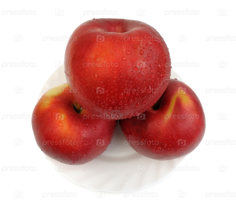 Красные яблоки на белой тарелке на белом фоне