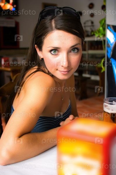 Красивая девушка сидит в баре