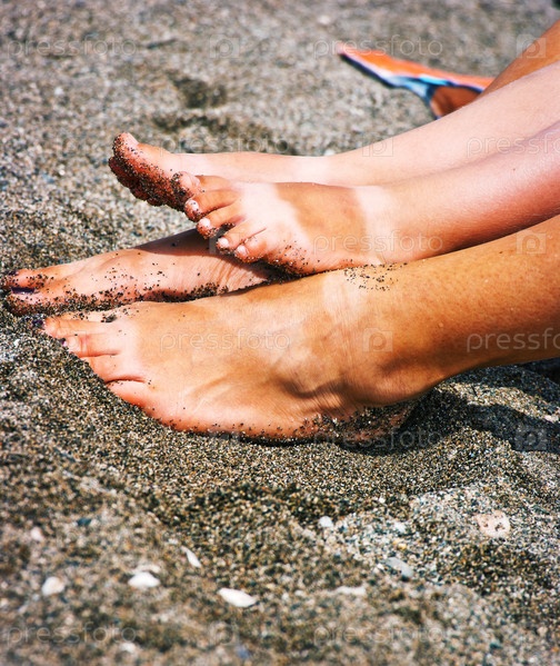 Женские и детские ноги на пляже