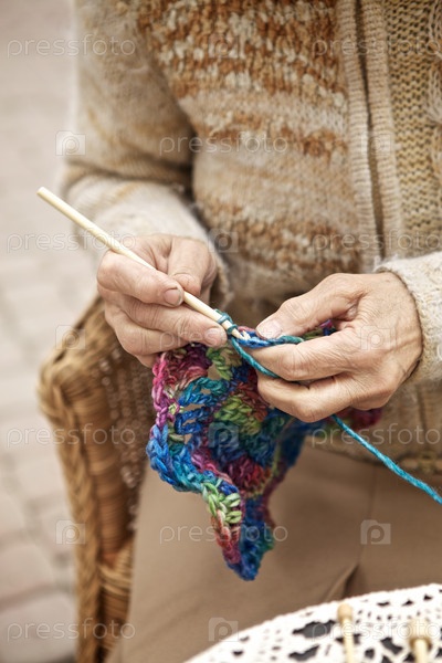 Руки пожилой женщины с вязанием