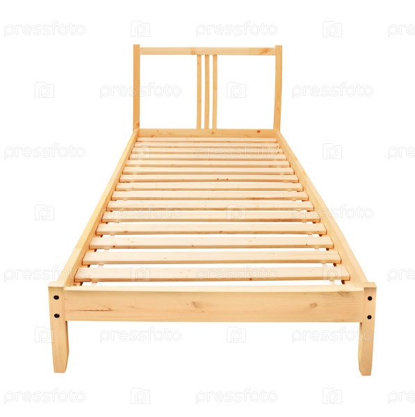 Деревянная кровать на белом фоне