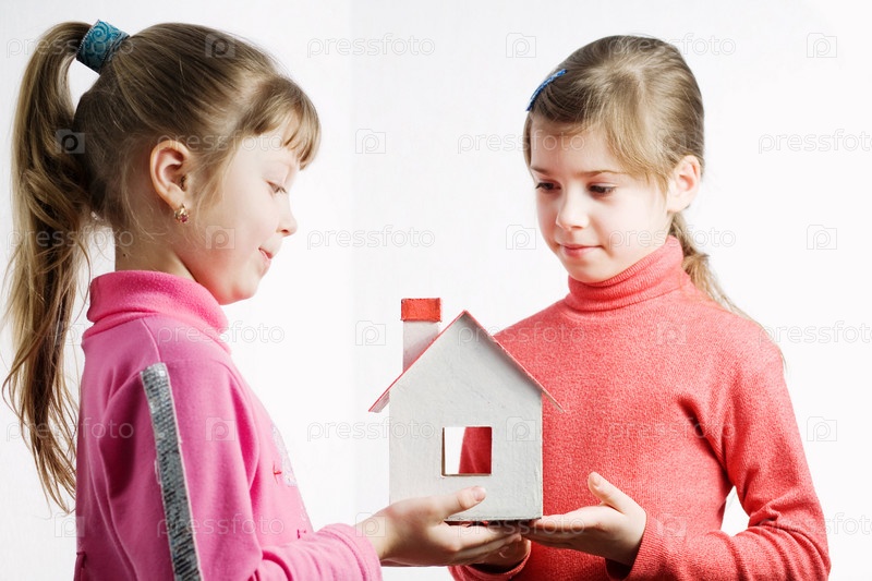 Две девочки с кукольным домиком