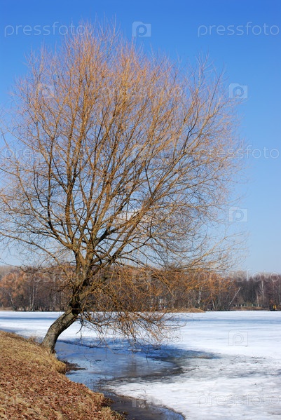 Таяние льда на озере, весна