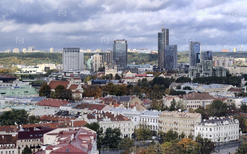 Вильнюс. Панорама старого города и делового района осеннью