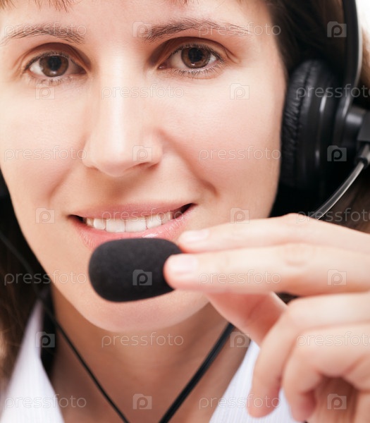 Женщина с наушниками или гарнитурой