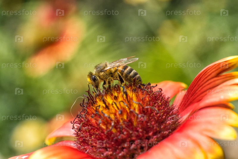 Пчела собирает нектар на цветке Гайлардия