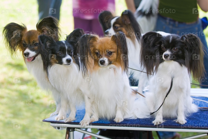 Собаки,породы бабочка,сидят на столе
