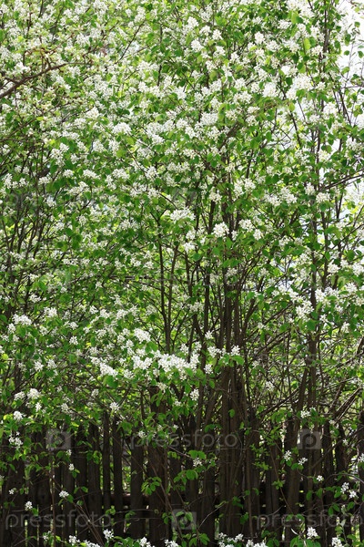 Цветущий куст за забором