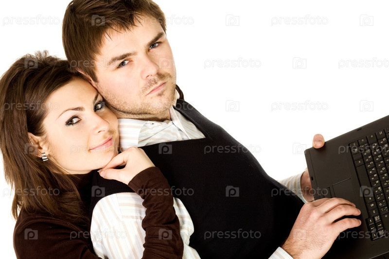 Тема любви: красивая пара с ноутбуком