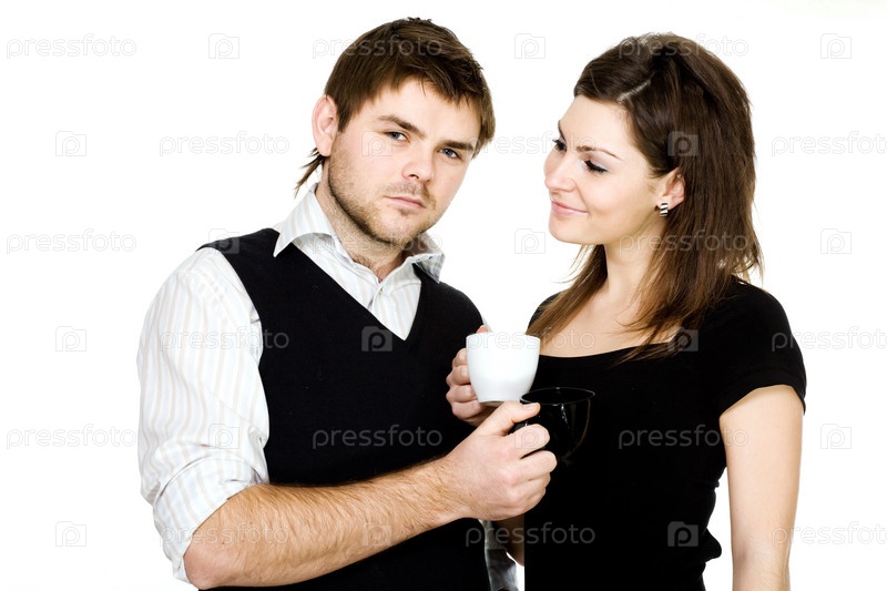 Женщина и мужчина с чашками чая
