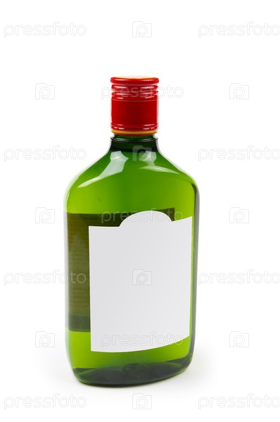 Зеленая бутылка с пустой этикеткой на белом фоне
