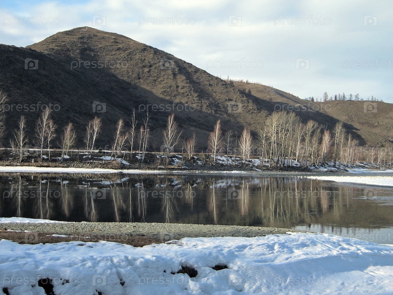 Вечерний вид склона горы у реки Катунь, Горный Алтай