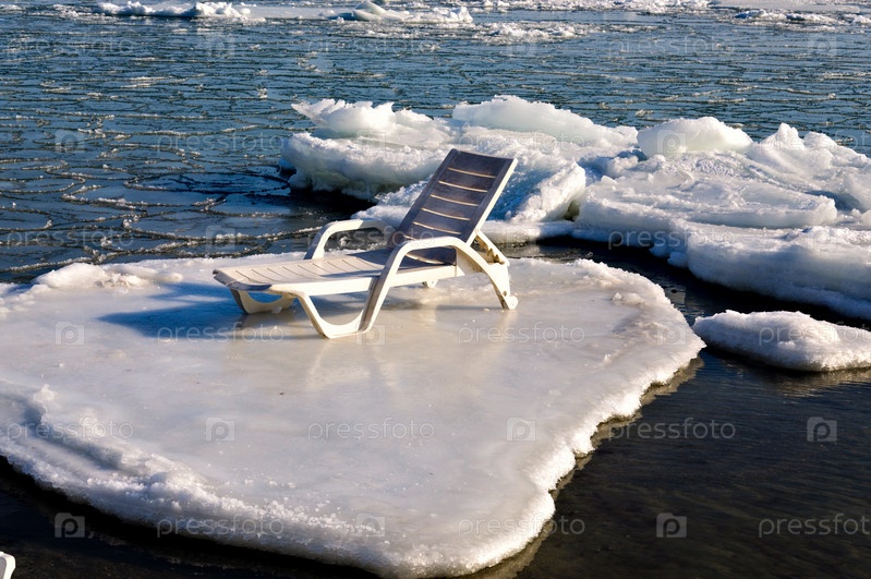Пустой шезлонг на льдине