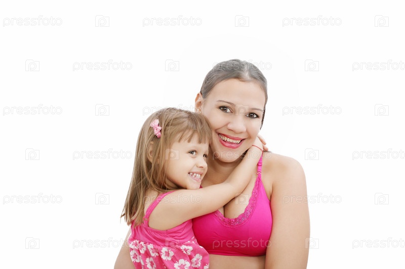 Портрет беременной испаноязычной женщины с дочерью, изолированный на белом фоне