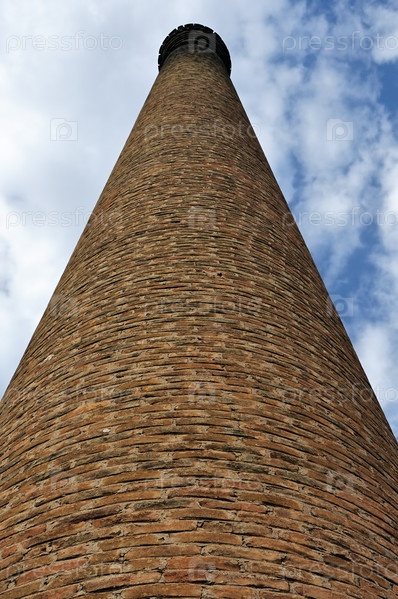 Старая промышленная кирпичная дымовая труба на заброшенном заводе