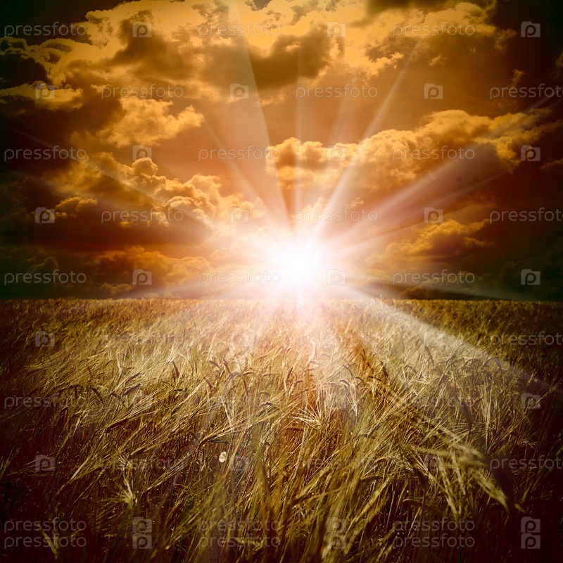 поле пшеницы на закате