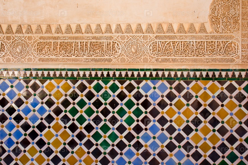 Древняя мозаика на стене, Альгамбра, Гранада, Испания