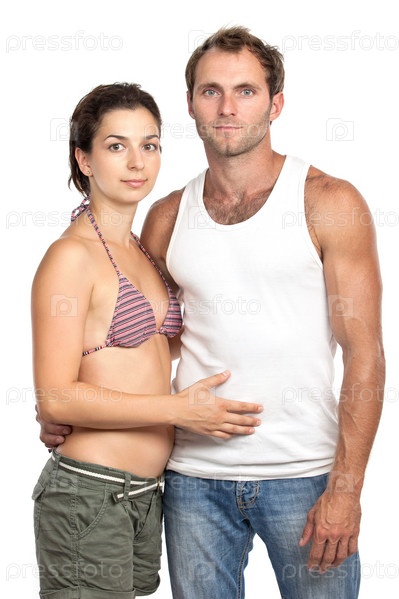 любящая пара на белом фоне