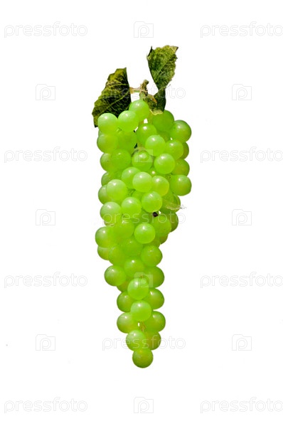 Гроздь белого винограда крупным планом, изолированная на белом фоне