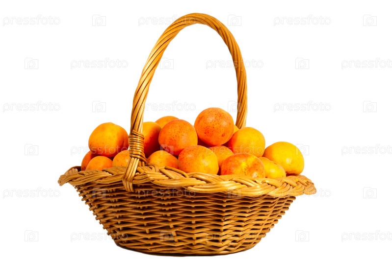 Корзина с абрикосами, изолированная на белом фоне