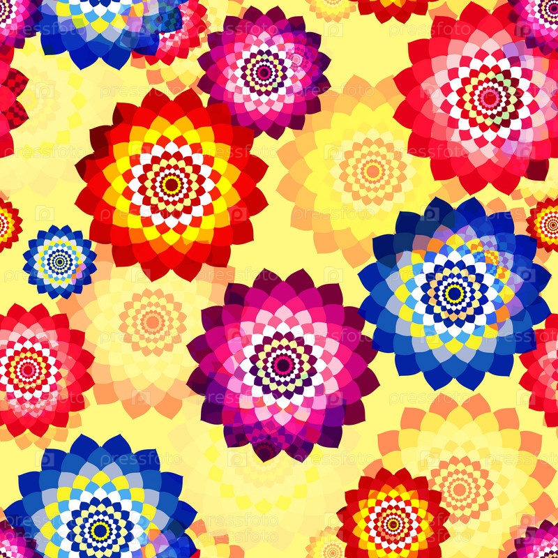 Бесшовный цветочный фон с разноцветной мозаикой из цветов