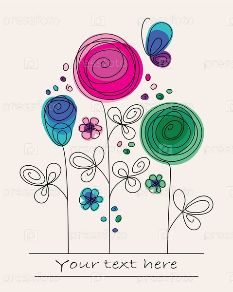 Веселые красочные абстрактные цветы и бабочки