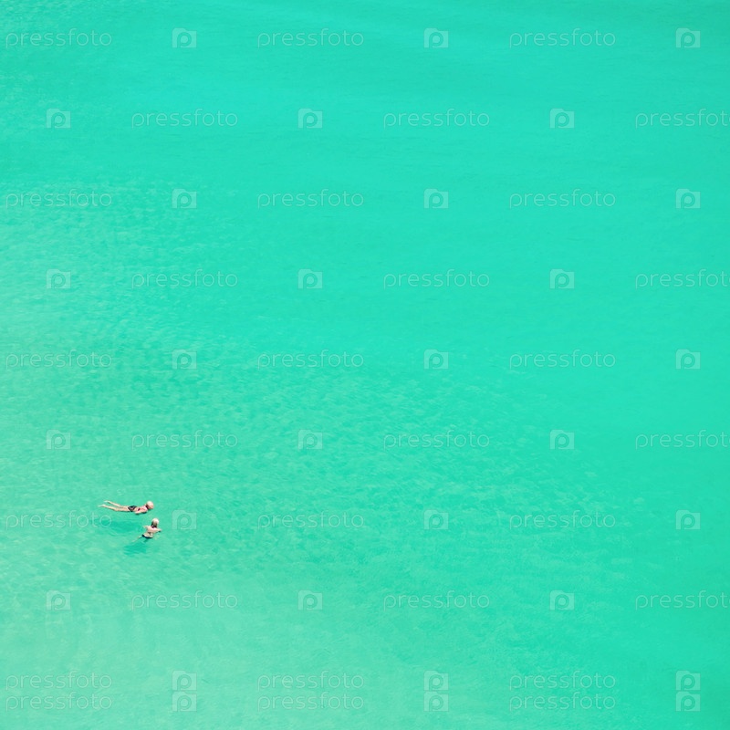 Два человека купаются в чистом море