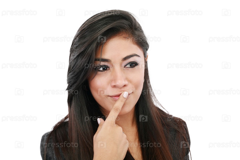 Привлекательная задумчивая молодая женщина, изолированная на белом фоне