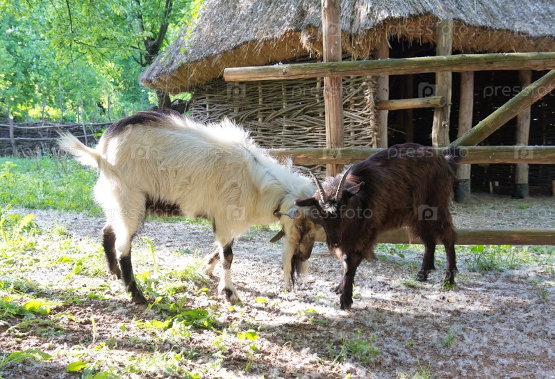 Две бодающихся козы на ферме