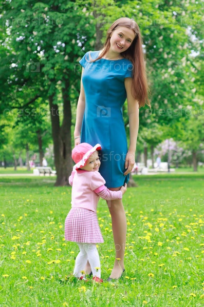 Красивая молодая мать и дочь в парке