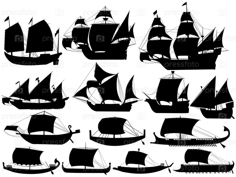 Силуэты древних парусников