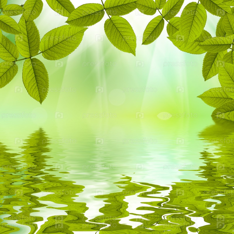 Зеленые листья с отражением в воде